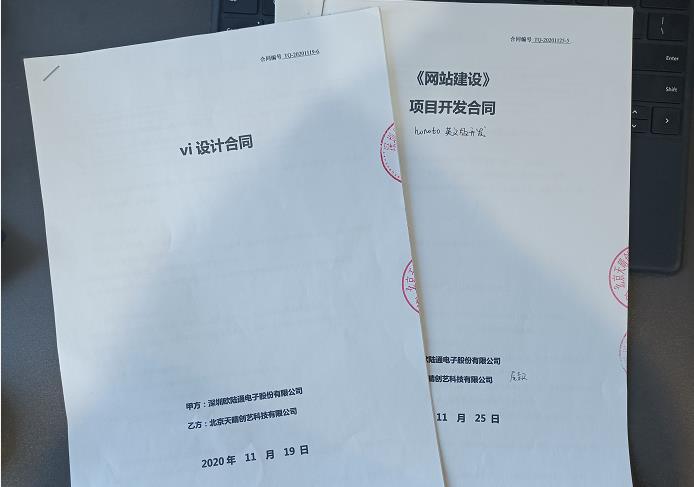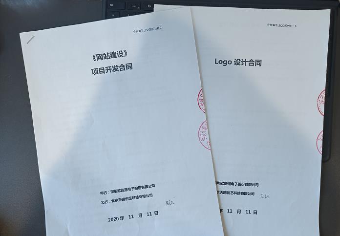 2020年11月11日,深圳歐陸通電子股份有限公司與北京天晴創藝科技有限公司正式簽約網站建設和logo設計合同,雙方就歐陸通網站建設、logo設計等具體項目達成協議,并于當日成立項目群組,各個項目正式啟動。